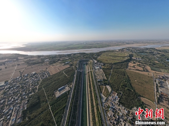 南水北調(diào)中線總干渠與黃河十字相交。 (中新社記者 李超慶 攝)