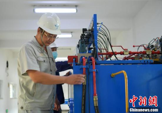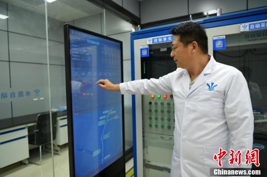 中國南水北調(diào)集團(tuán)中線有限公司河北分公司石家莊管理處處長郝明正在自動水質(zhì)監(jiān)測站查看水質(zhì)。